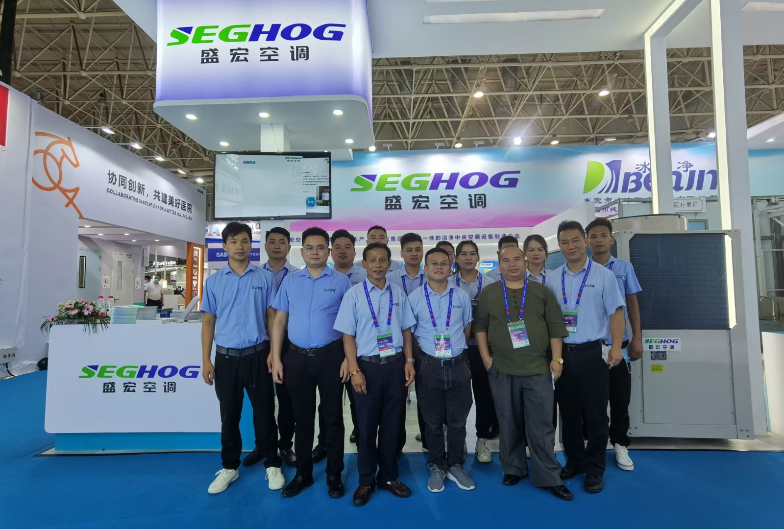 盛宏中央空調作為行業的科技企業,具備強大的非標化產品設計能力,能精準地為客戶量身訂做符合潔凈行業標準要求的中央空調設備。這次展會盛宏空調展出單元式空調機組 、空氣處理機組、組合式空調機組、醫用空調機組、風機盤管、風冷模塊機組、水冷螺桿式冷水機組等諸多產品。